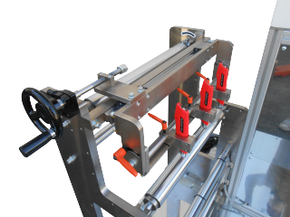 - メジャーに合わせてそれぞれ手動で移動 カッターユニットの幅方向移動はハンドル式
